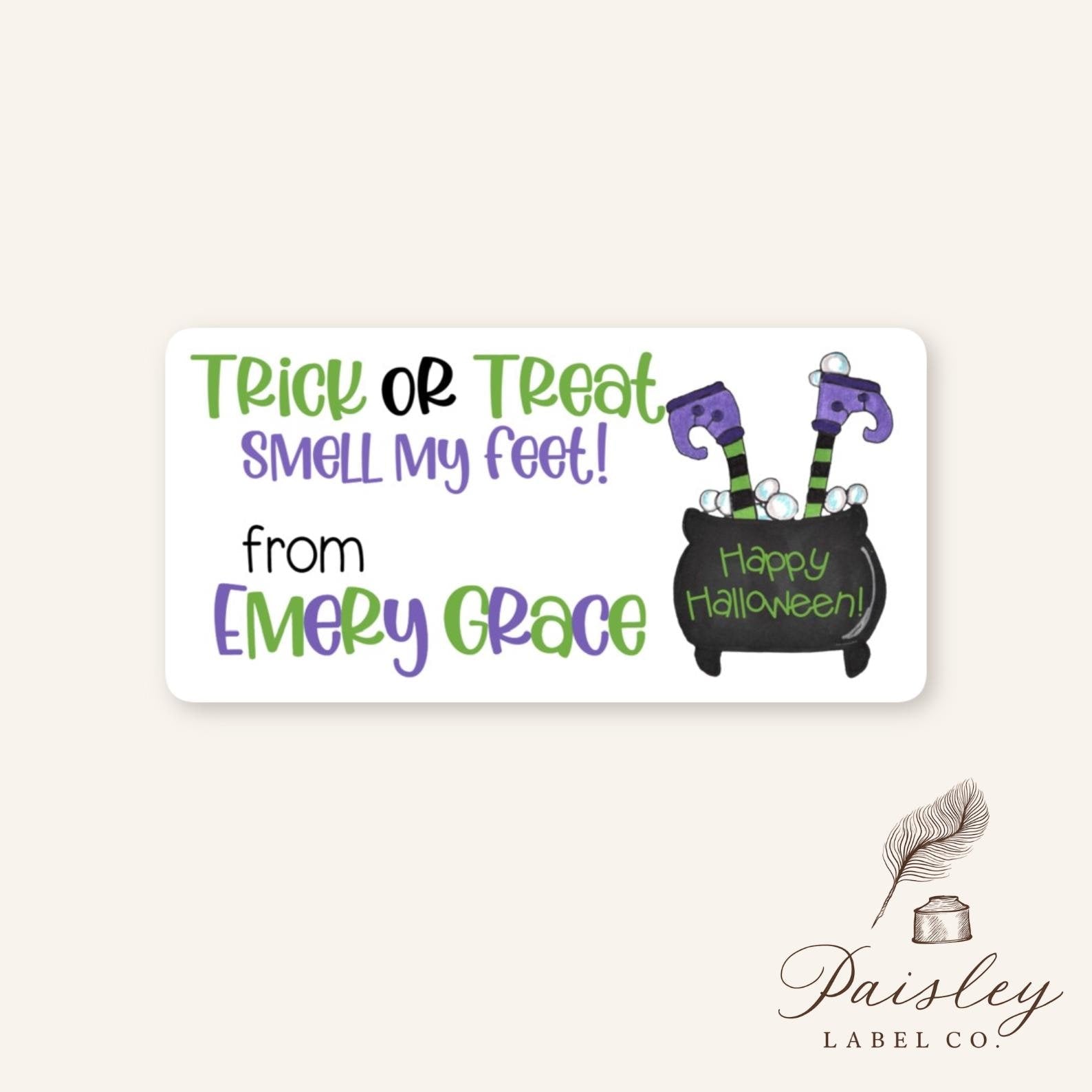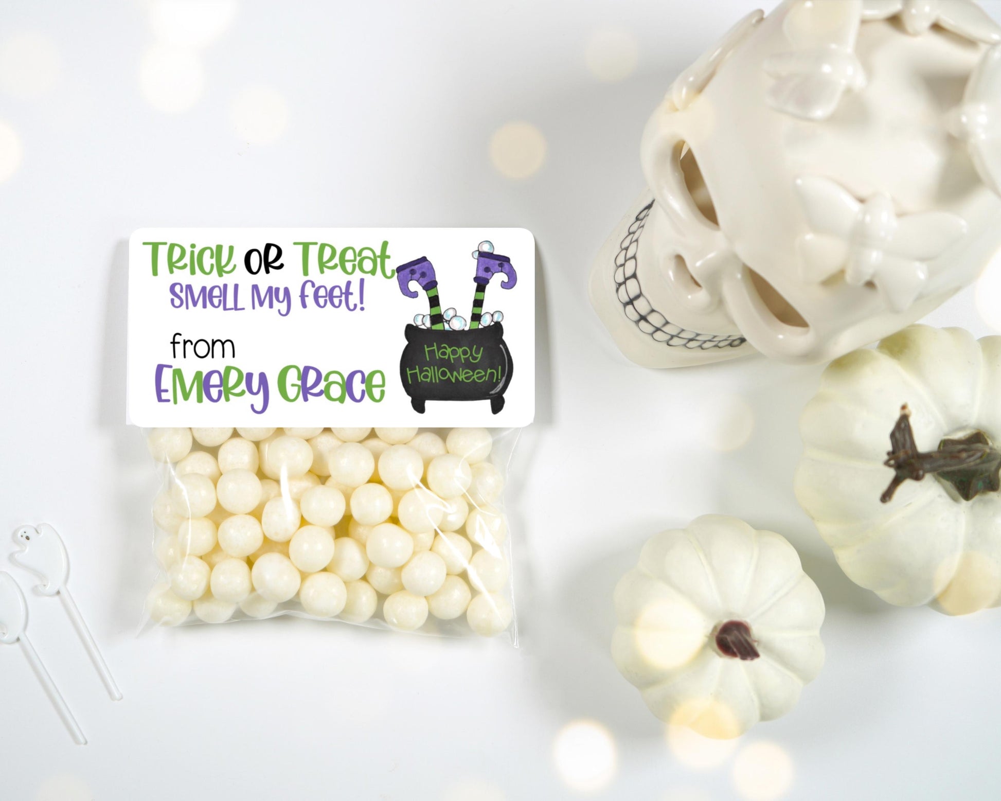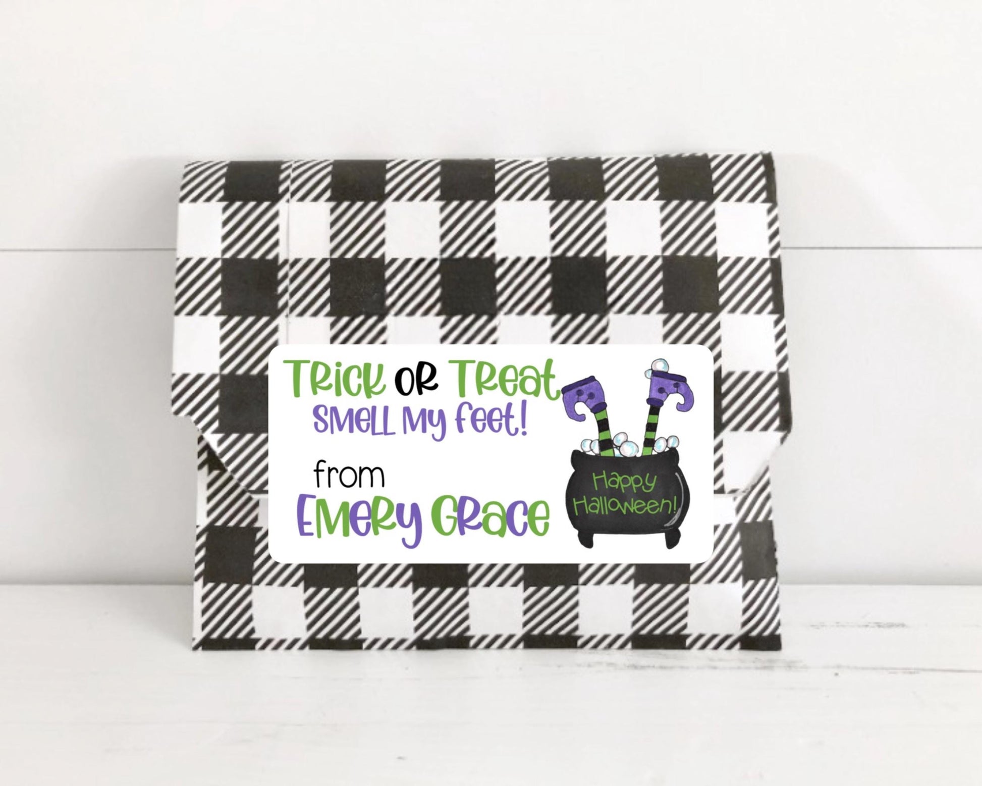 Happy Halloween Smell My feet Witches Feet Cauldron Kids Teacher Gift Tag Treat Bag Personalized Party Favor Stickers Labels Sheet of 10