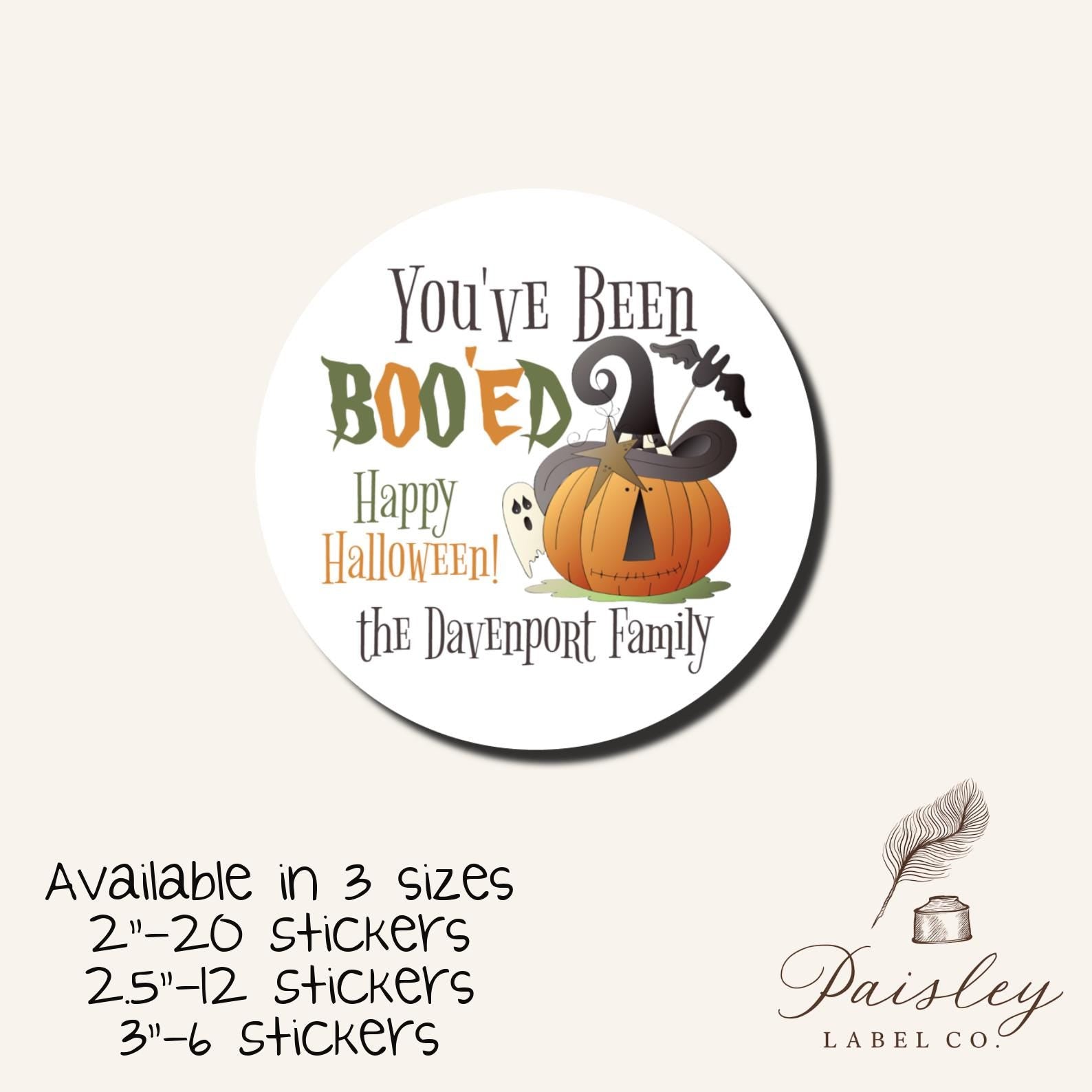 Prim Primitive You've Been Boo'ed Halloween Stickers Bat Pumpkin Ghost Booed Sticker Label Happy Halloween Gift Tag Round Candy Sticker