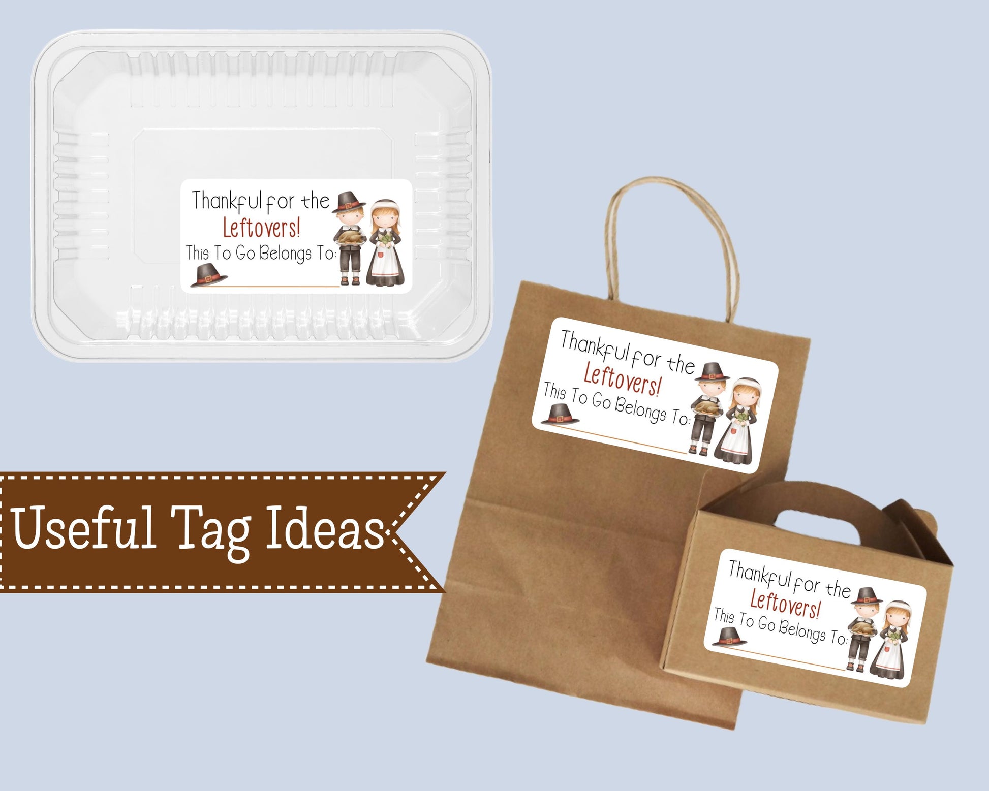 Thankful For The Leftovers Take Home Food Stickers Fall Stickers Turkey Girl Boy Pilgrims Pilgrim Hat Thanksgiving Labels Sheet of 10